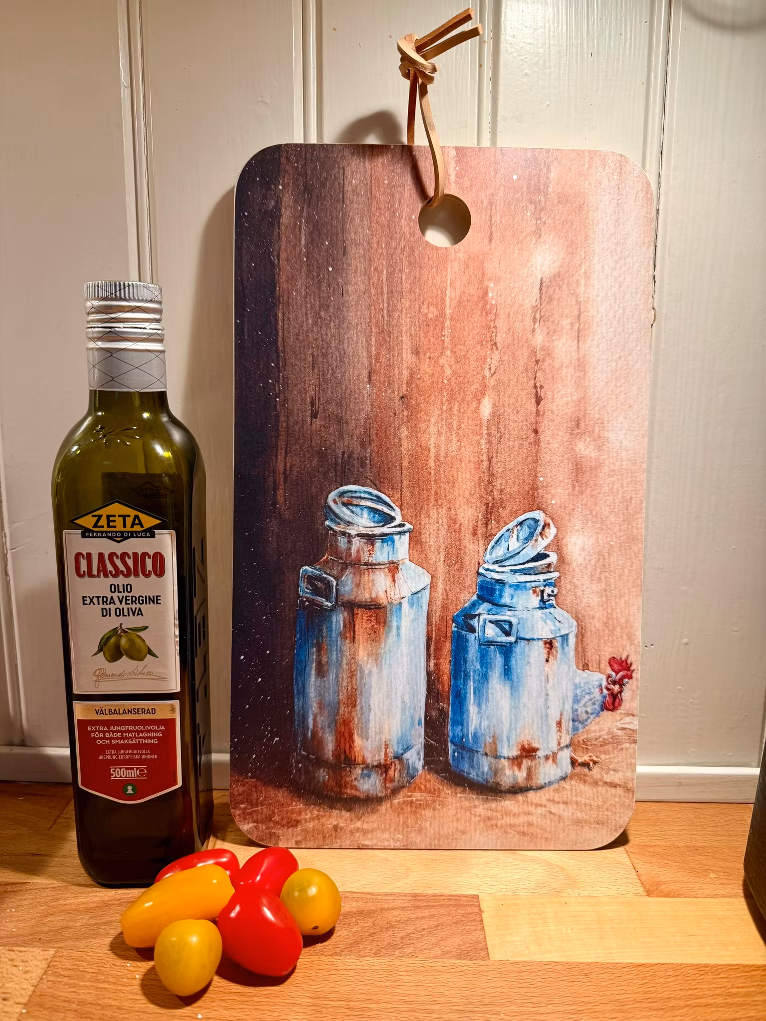 Dessa produkter är gjorda av formpressad FSC-certifierat björkfanér med matt, slitstark och värmetålig yta. De går alldeles utmärkt att användas i köket och att hacka grönsaker mm på. Produkterna tål maskindisk upp till 95 gr. Det ingår läderrem till varje skärbräda.